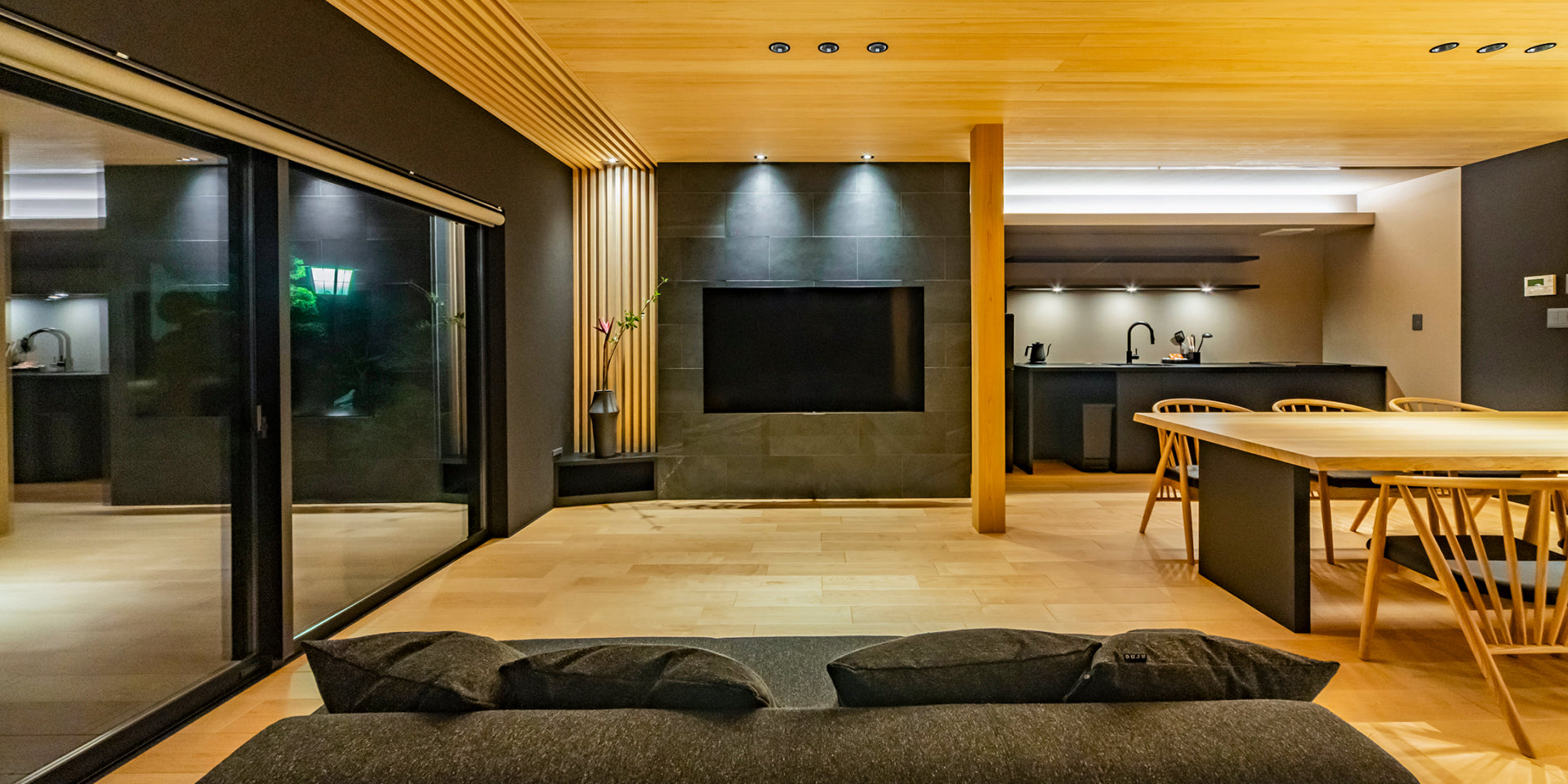 照明設計にも定評があり、巧みに取り入れた柔らかな光の間接照明が心地良いくつろぎをもたらします。