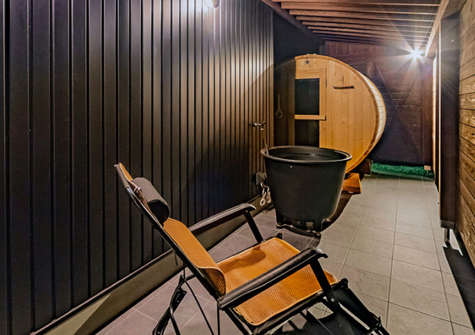 GLOWVIA高山昭和は、グループ初のサウナ完備のヴィラになります。心安らぐ中庭には、壺型の水風呂と外気浴ができるサウナチェアもあり、周りを気にせず心ゆくまでサウナ体験をお楽しみいただけます。